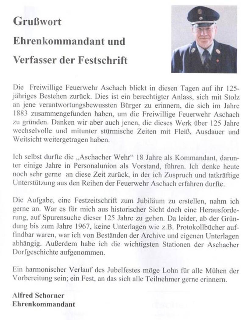 Grußworte vom 125 jährigen Gründungsfest der FFW Aschach